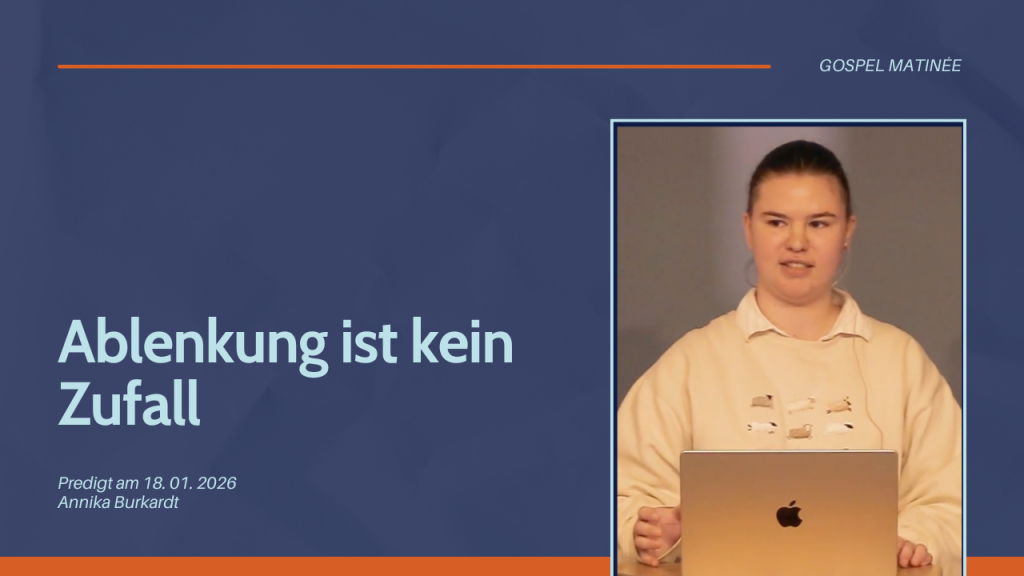 Das ist der Appell von Annika in dieser Predigt: "Tut euch selbst einen Gefallen: Lebt ein zielgerichtetes und fokussiertes Leben!" Natürlich zeigt Annika auf, dass diese Aussage ein Fundament in der Bibel hat. Predigt von Annika Burkardt am 18. Januar 2026