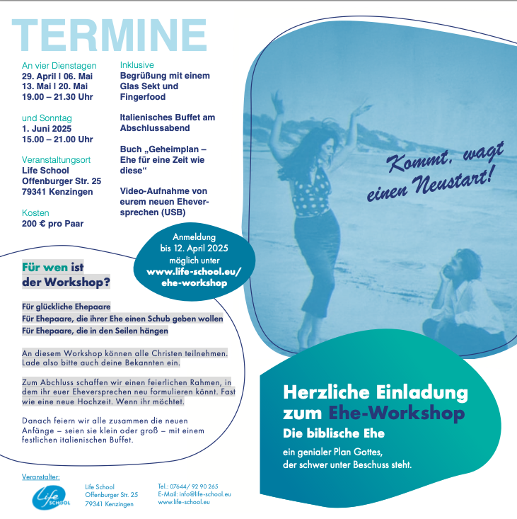 29. April, 6. Mai, 13. Mai, 20. Mai 2025 jeweils 19.00 – 21.30 Uhr