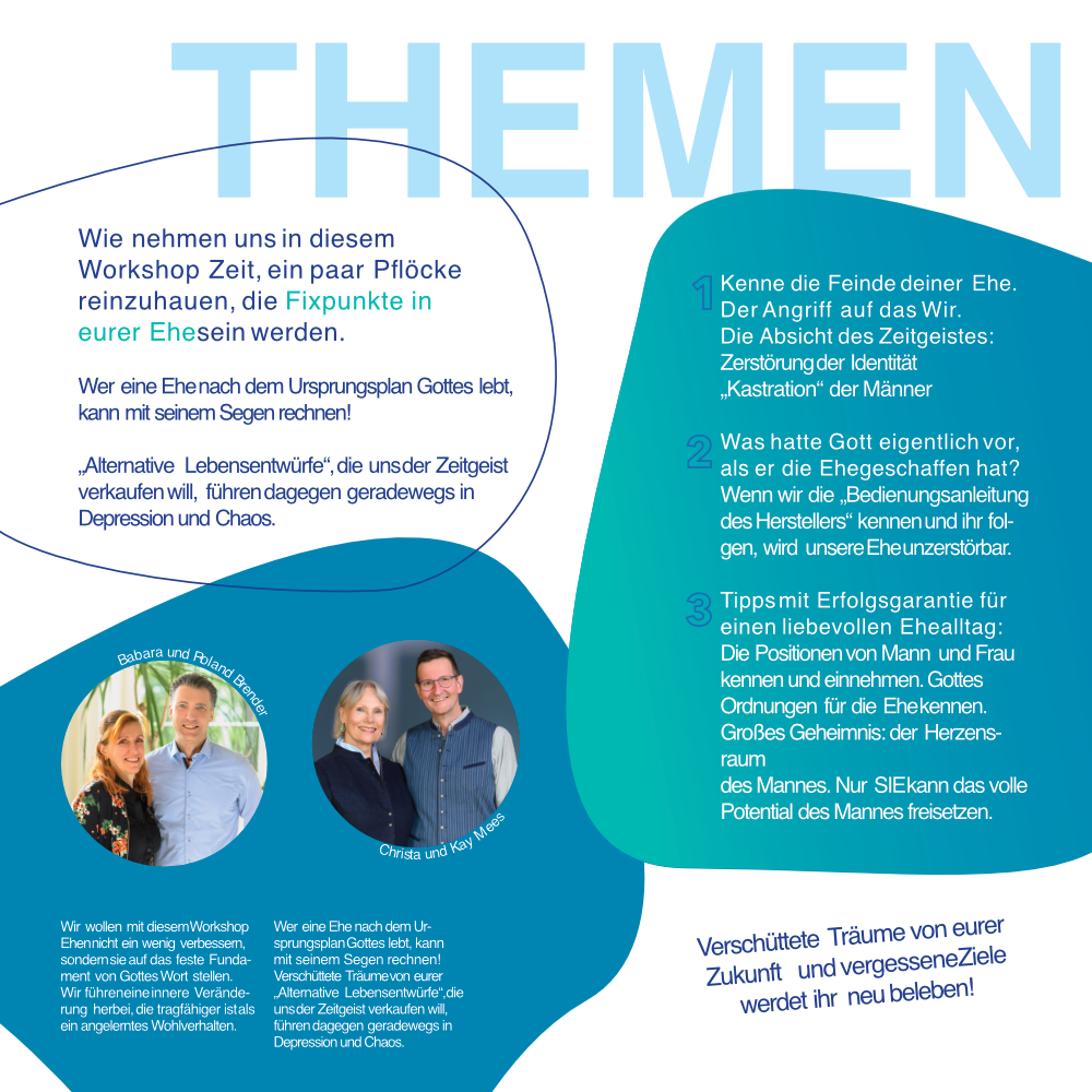 Das Eheseminar findet an vier aufeinanderfolgenden Dienstagen statt: